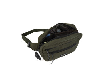 This mini waistbag offers style and function, worn over the shoulder, crossbody, or at the waist. It features a top zippered main compartment with a key loop and mesh pocket for your essentials, plus a front pocket for extra storage.
